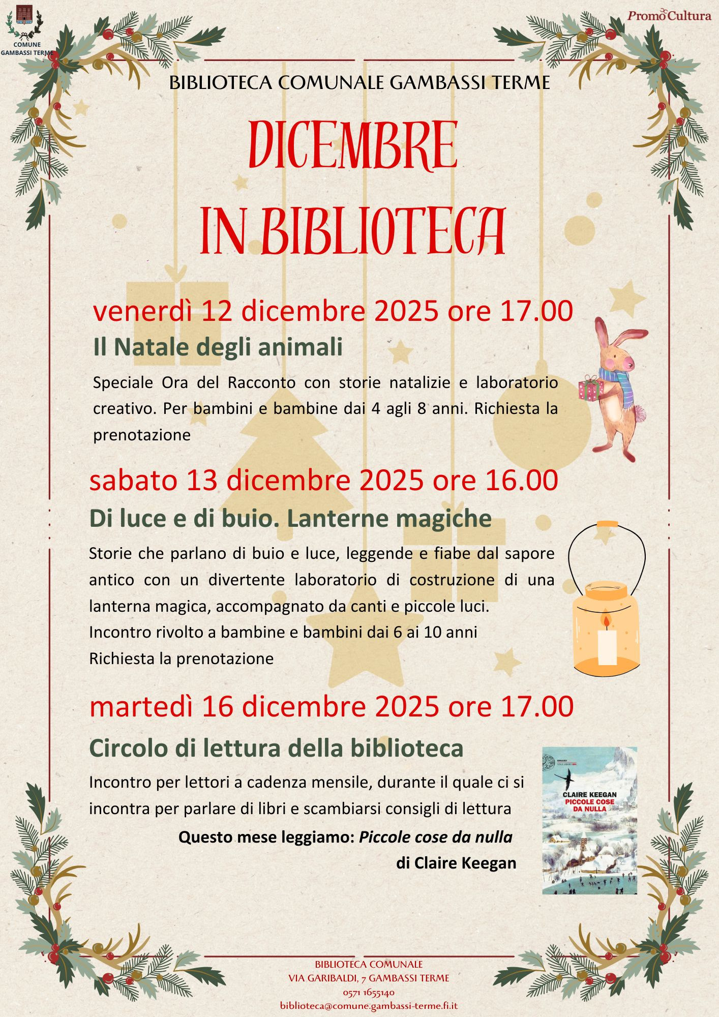 Incontro mensile del circolo di lettura della biblioteca. Questo mese leggiamo: Piccole cose da nulla di Claire Keegan