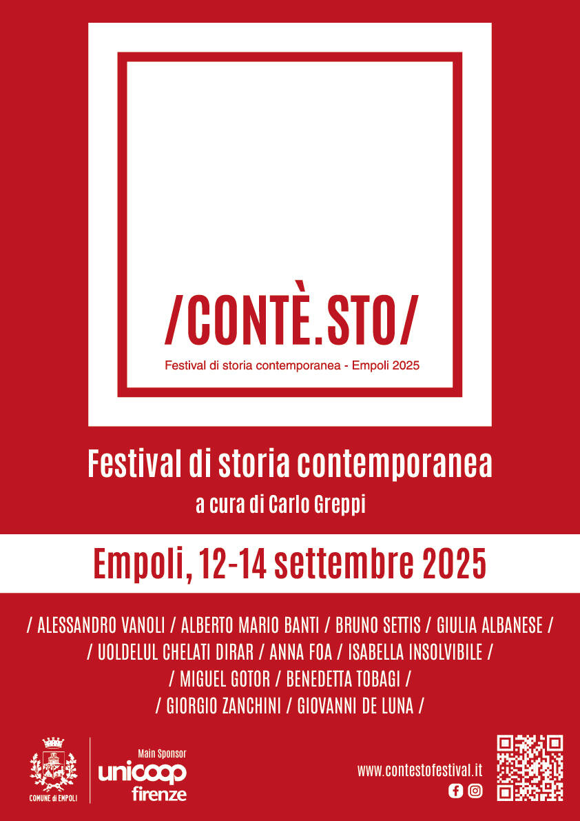 Inizierà venerdì 12 settembre a Empoli, la prima edizione del festival /contè.sto/, l’obiettivo è quello di portare al grande pubblico contenuti di alto livello con una serie di lezioni pubbliche che introdurranno fondamentali questioni storiche e storiografiche e con una spiccata dimensione civile.