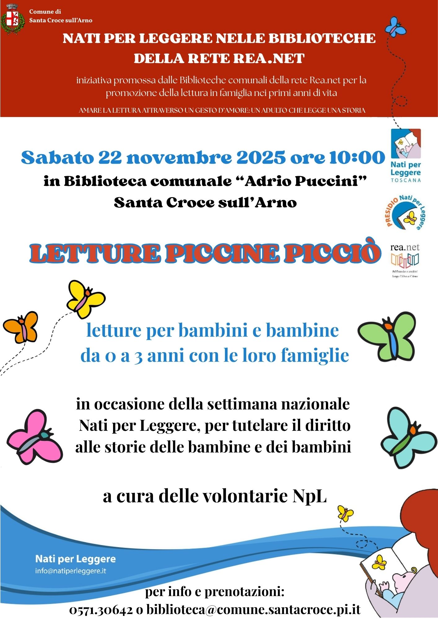 Vi aspettiamo in biblioteca Adrio Puccini di Santa Croce s/Arno sabato 22 novembre alle ore 10.00 con Letture piccine picciò per bambini e bambine da 0 a 3 anni con le loro famiglie.