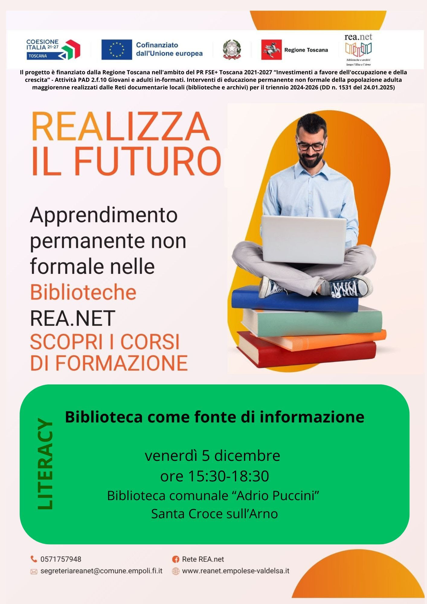 Continuano i corsi del progetto “REAlizza il futuro - Apprendimento permanente nelle biblioteche REA.net".