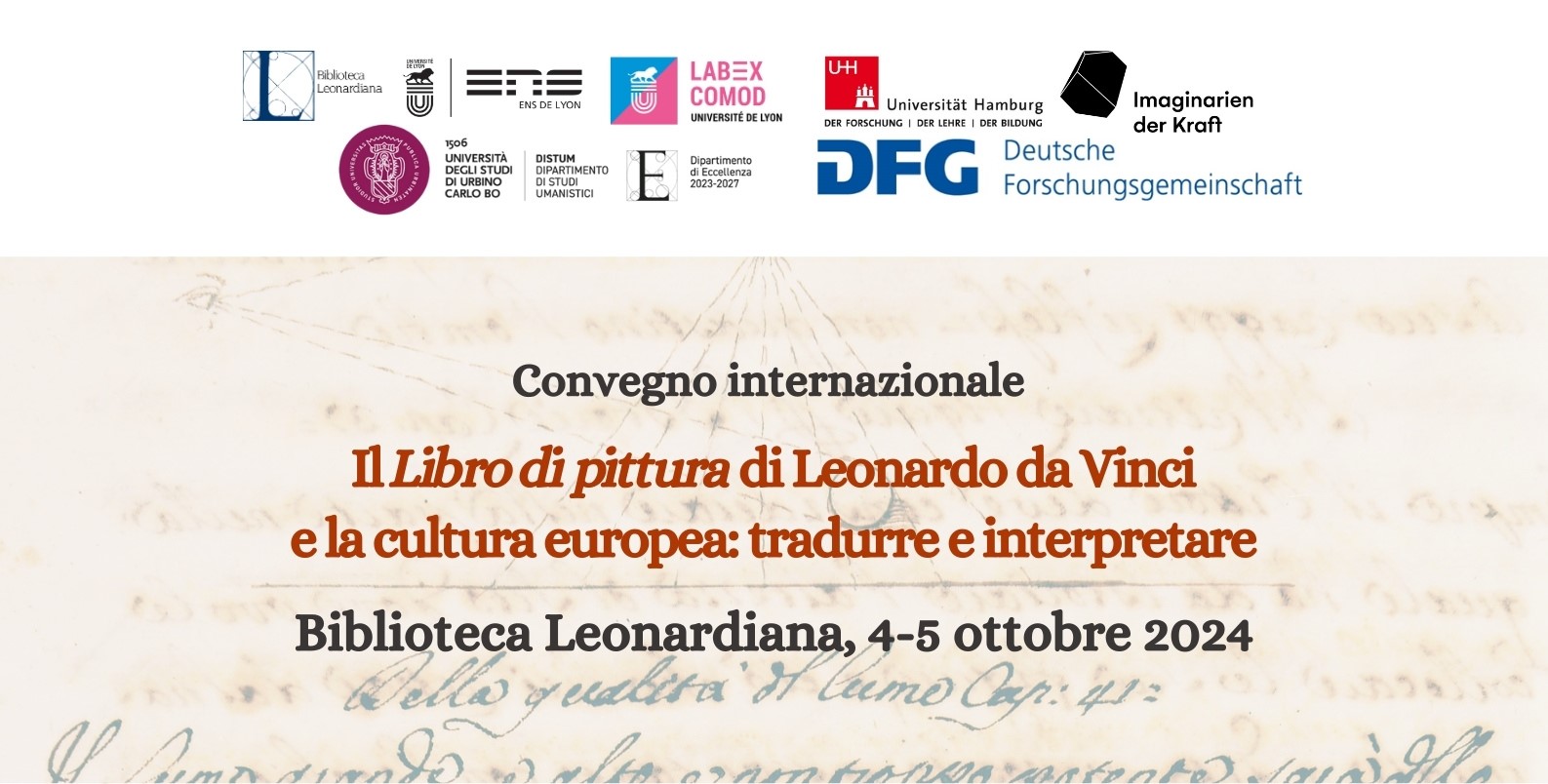 Venerdì 4 e Sabato 5 ottobre 2024 presso la biblioteca Leonardiana di Vinci, Convegno internazionale organizzato dal Centro internazionale di studi e documentazione Leonardo da Vinci E.T.S. di Vinci, in collaborazione con l’Ecole Normale Supérieure de Lyon, l’Università di Urbino Carlo Bo e la Universität Hamburg: