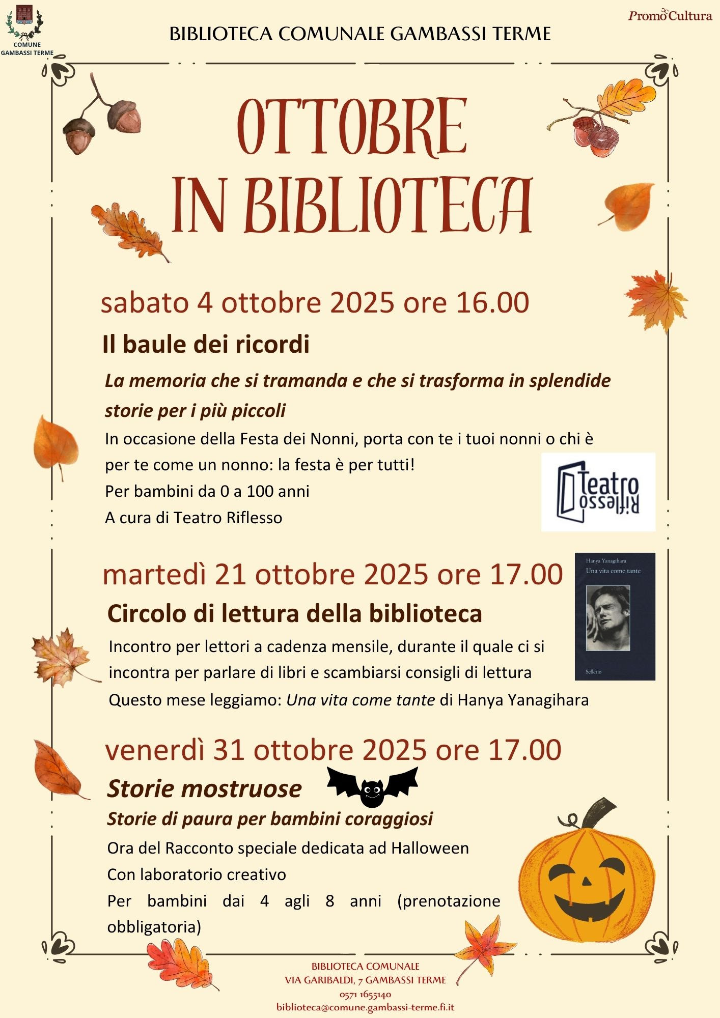 Gli appuntamenti del mese di ottobre alla biblioteca Comunale di Gambassi Terme